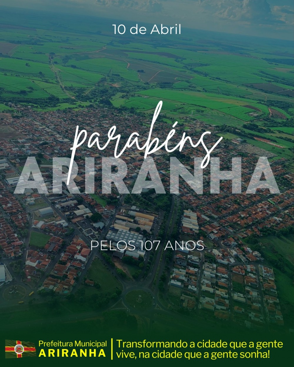 Hoje é um dia especial para todos nós! Celebramos com muita alegria os 107 anos da nossa querida Ariranha, uma cidade construída com trabalho, dedicação e amor por sua gente.