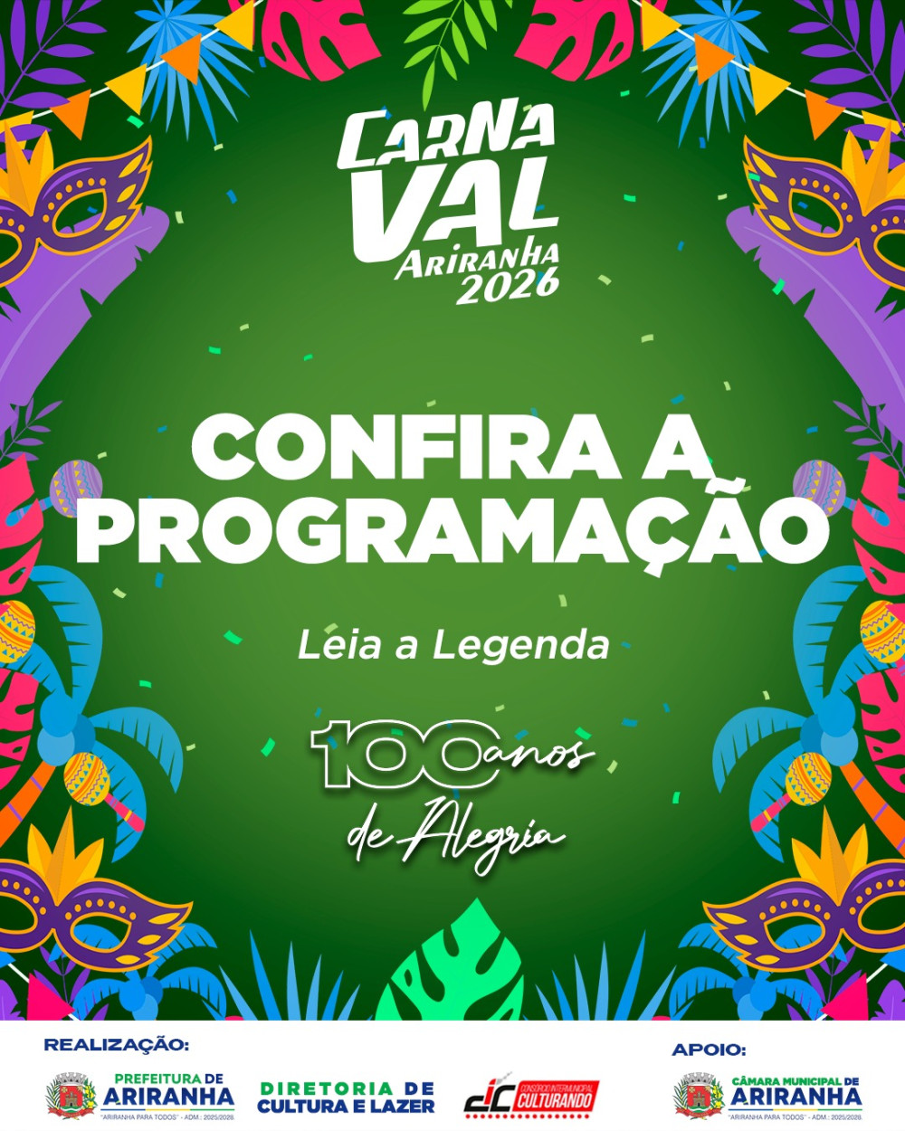 CarnaVal Ariranha 2026 – 100 anos de alegria.
