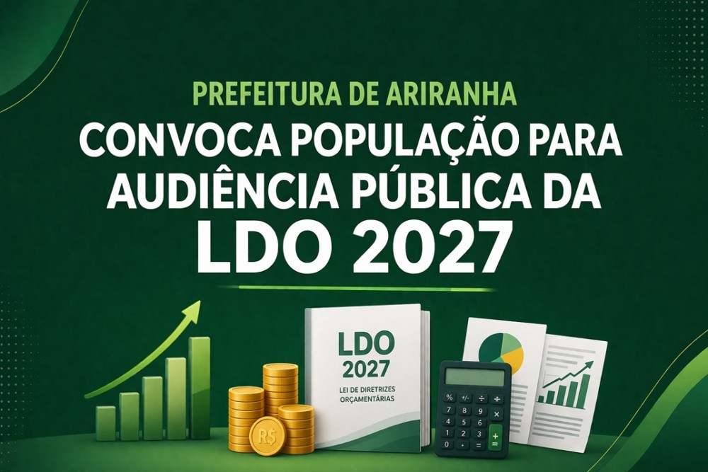 A audiência será realizada no dia 14 de maio de 2026 (quinta-feira), às 18h30, nas dependências da Câmara Municipal de Ariranha.