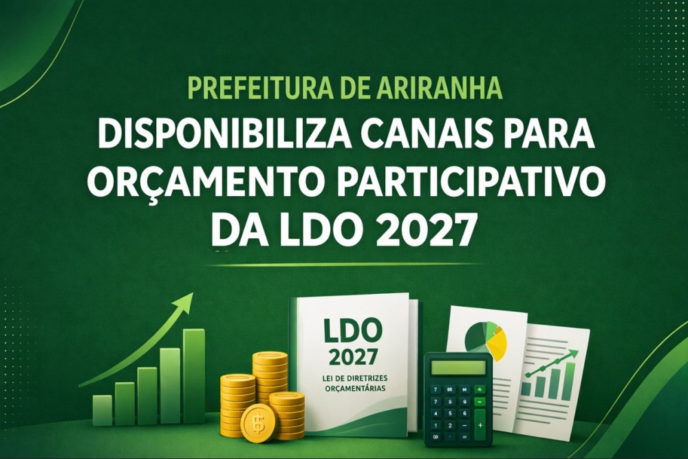 A Prefeitura Municipal de Ariranha, juntamente com o Departamento de Contabilidade, informa a toda a população em geral, representantes de sociedades civis, entidades públicas e privadas, empresários e associações, que já estão abertos os canais para a coleta de sugestões referentes à elaboração do Projeto de Lei da Lei de Diretrizes Orçamentárias (LDO) para o exercício de 2027.