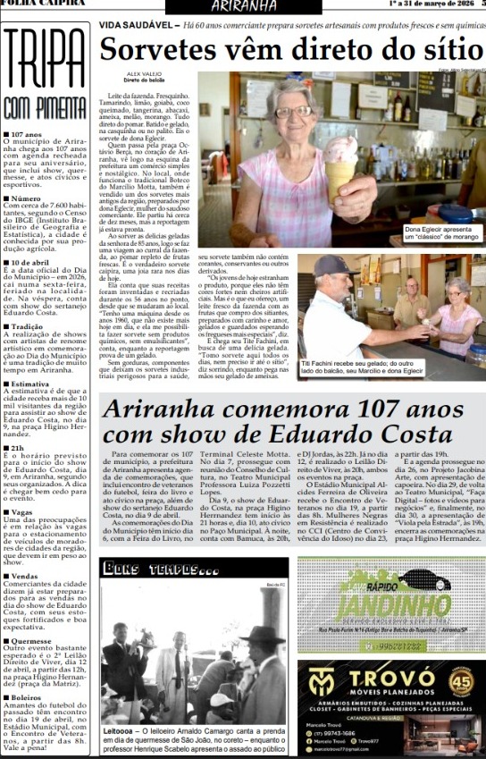 Ao celebrar mais um aniversário, Ariranha não olha apenas para o futuro, mas reconhece e fortalece suas raízes. É essa combinação entre tradição e desenvolvimento que sustenta o crescimento do município.